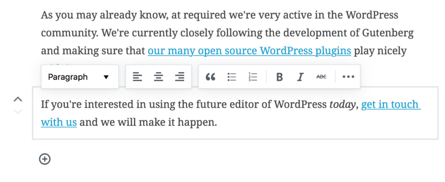 That being said, if you’re interested in using the future editor of WordPress today, get in touch with us and we will make it happen.