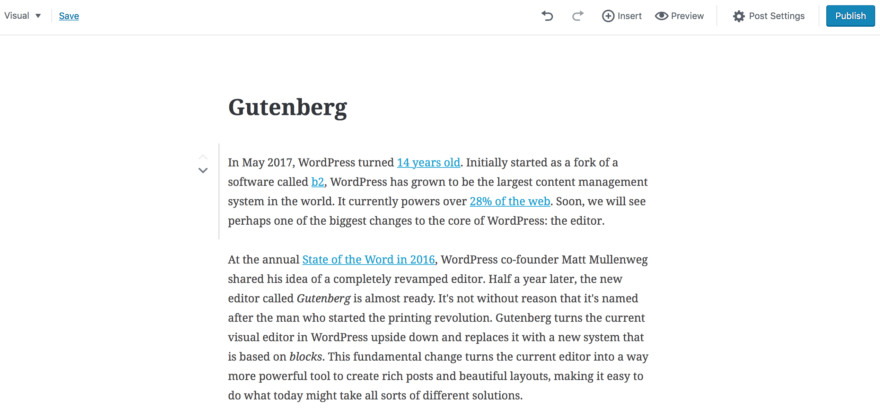 On May 2017, WordPress turned 14 years old. Initially started as a fork of a software called b2, WordPress has grown to be the largest content management system in the world. It currently powers over 28% of the web. Soon, we will see perhaps one of the biggest changes to the core of WordPress: the editor.